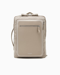 New briefcase backpack made of recycled nylon and pebbled leather, with compact yet capacious volumes, designed to take with you all day. Featuring two large compartments with zip closures, it has a laptop compartment and two comfortable padded shoulder straps that are detachable so that it can carried like a briefcase. A versatile, hard-wearing accessory with an urban attitude. Fabric: 50% recycled polyester Two zipped compartments One laptop pocket Outer pocket with zip fastening Pebbled-leather front insert Pebbled-leather handle Adjustable, padded shoulder straps that can be removed for carrying by hand Embossed Giorgio Armani logo Measurements: 30 x 42 x 14 cm Product Code: Y2O184Y752EU6209