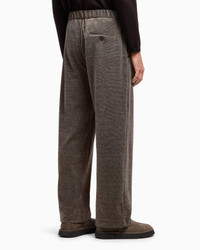 Effortless, relaxed look for these single-pleat trousers made from organically-grown milleraies cotton jersey. Featuring a practical elasticated waistband for a comfortable fit, they have side pockets and a back pocket with button. A versatile item designed for casual daytime looks. Fabric: 80% organically-grown cotton Elasticated waistband Button and zip closure Two side pockets Back welt pocket with button Hem width: 26 cm Made in Italy Product Code: GM002593TE17723F1015