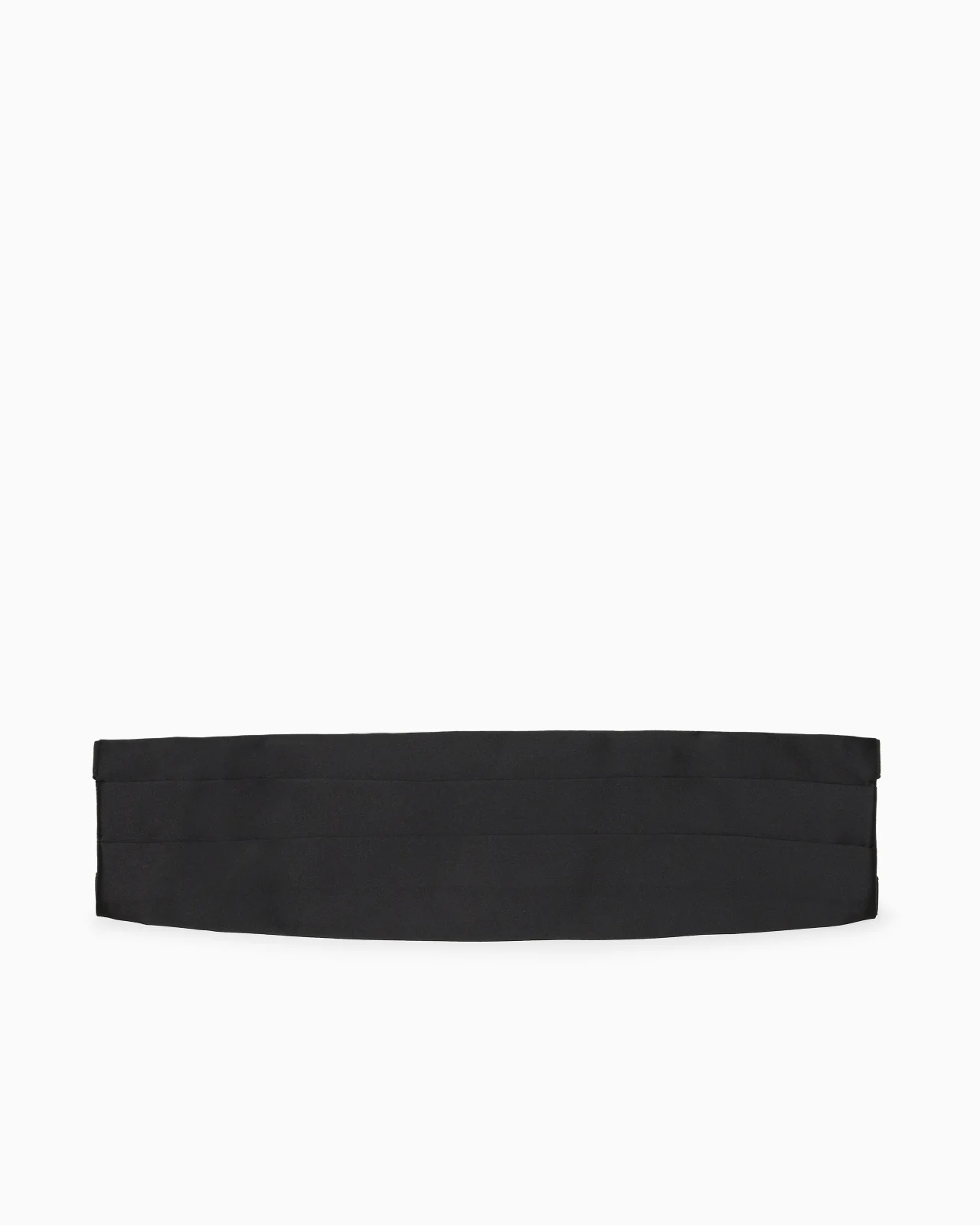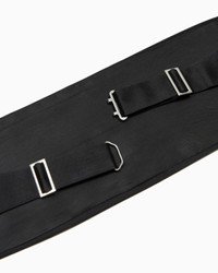 Tuxedo cummerbund made from silk satin with an adjustable closure. Product Code: 3600333R996100020 Details Composition 100% Mulberry silk Silk tuxedo cummerbund Elasticated back Measurements: 100 x 14 cm Made in Italy