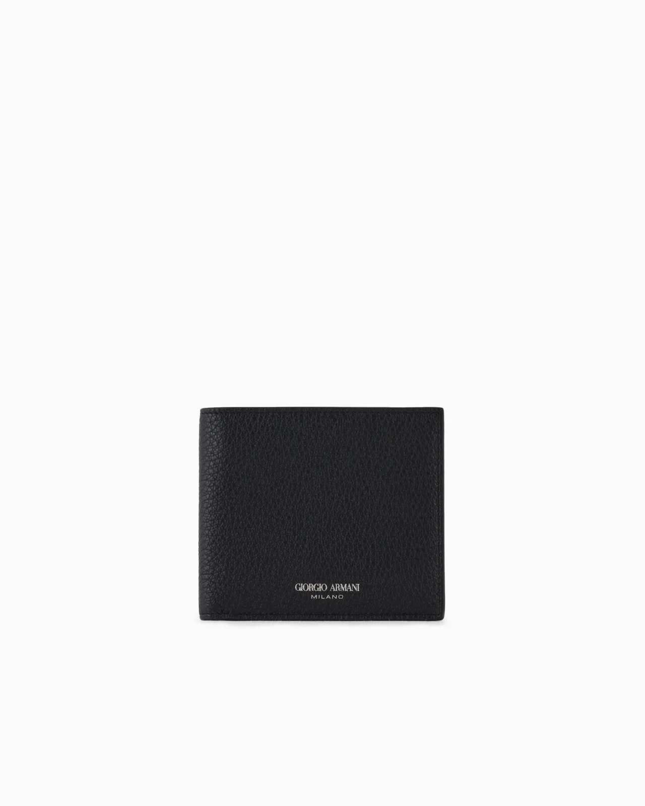 Bifold wallet made of supple calfskin featuring a pinpoint effect. The accessory features an interior banknote compartment and eight card pockets. The heat-stamped Giorgio Armani logo customises the front. Leather wallet Bifold style Heat-stamped Giorgio Armani logo A single banknote compartment Eight card slots Two receipt compartments Measurements: 12 x 9.5 x 2 cm Made in Italy Product Code: Y2R120YR56J80001