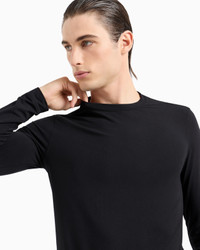 Long-sleeved crew-neck jumper made from stretch-viscose bamboo jersey, an iconic fabric of the brand that stands out for its cosy, comfortable feel and perfect fit. Personally chosen and worn by Giorgio Armani as the perfect complement to numerous looks, a hallmark garment of a sleek and highly versatile elegance. Product Code: 3GST51SJP4Z1UC99 Details Composition 90% Viscose 10% Elastane Crew neck Long sleeves Rolled, lapped-seam collar and cuffs Made in Italy Fitting The model is 188 cm tall and is wearing size 48 / M