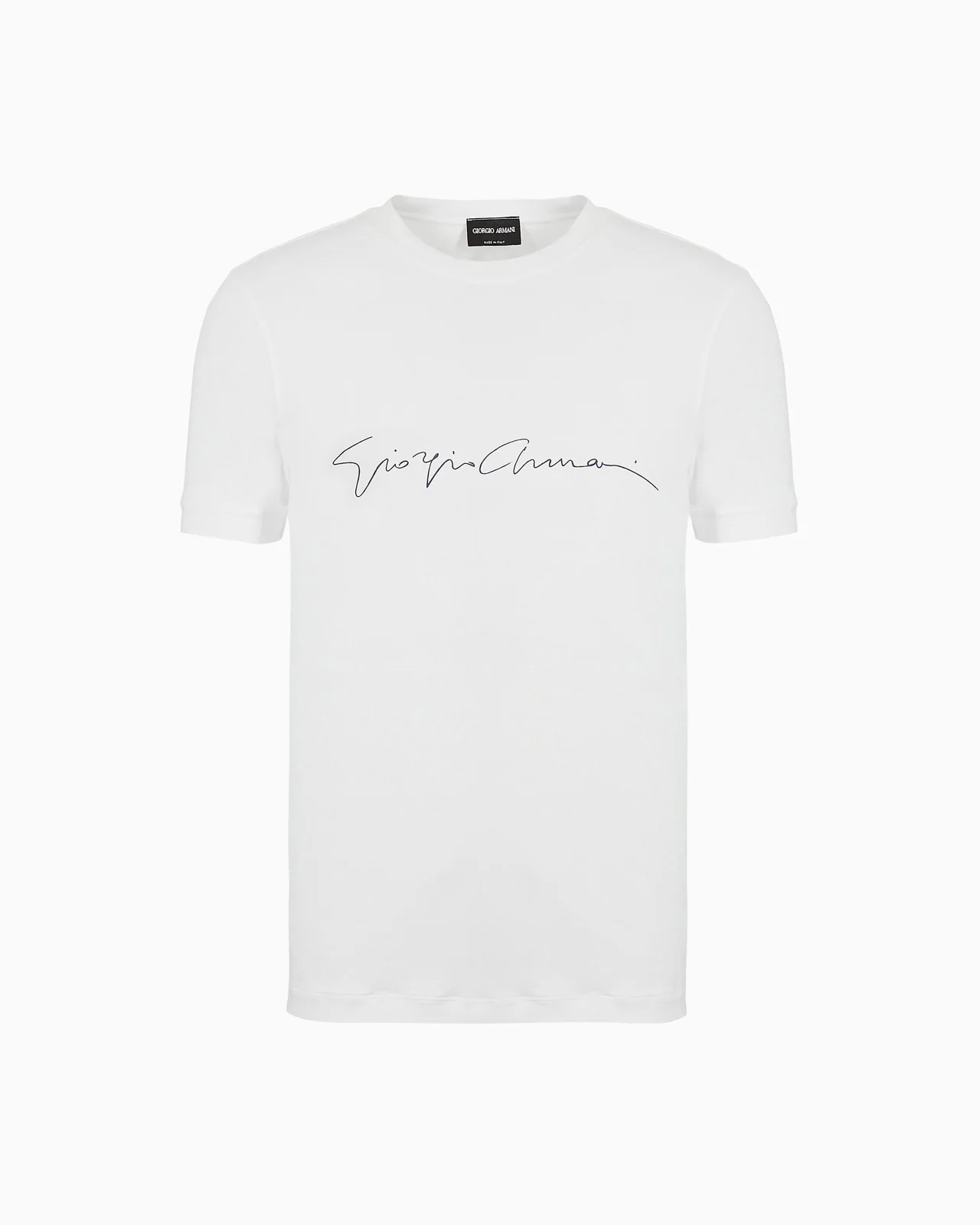The T-shirt acquires new character: more sophisticated and special. Made from mercerised viscose jersey, this item features an exclusive Giorgio Armani print. Slim fit Crew neck Short sleeves Contrasting signature logo water-transfer print on the front Made in Italy Product Code: 6GST56SJP4ZU090