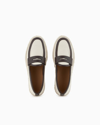 Distinctive, sophisticated loafers made of contrasting canvas and nappa leather, embellished with a rope-covered sole, similar to espadrilles. The style is defined by its clean, lightweight lines and comfortable fit, making it ideal for summer. An elegant offering, but with a casual-chic attitude, in tune with the Armani aesthetic. Canvas upper Contrasting nappa-leather trim Rope-covered EVA sole Canvas-covered welt TPU sole Made in Italy Product Code: X2A408XR407D332