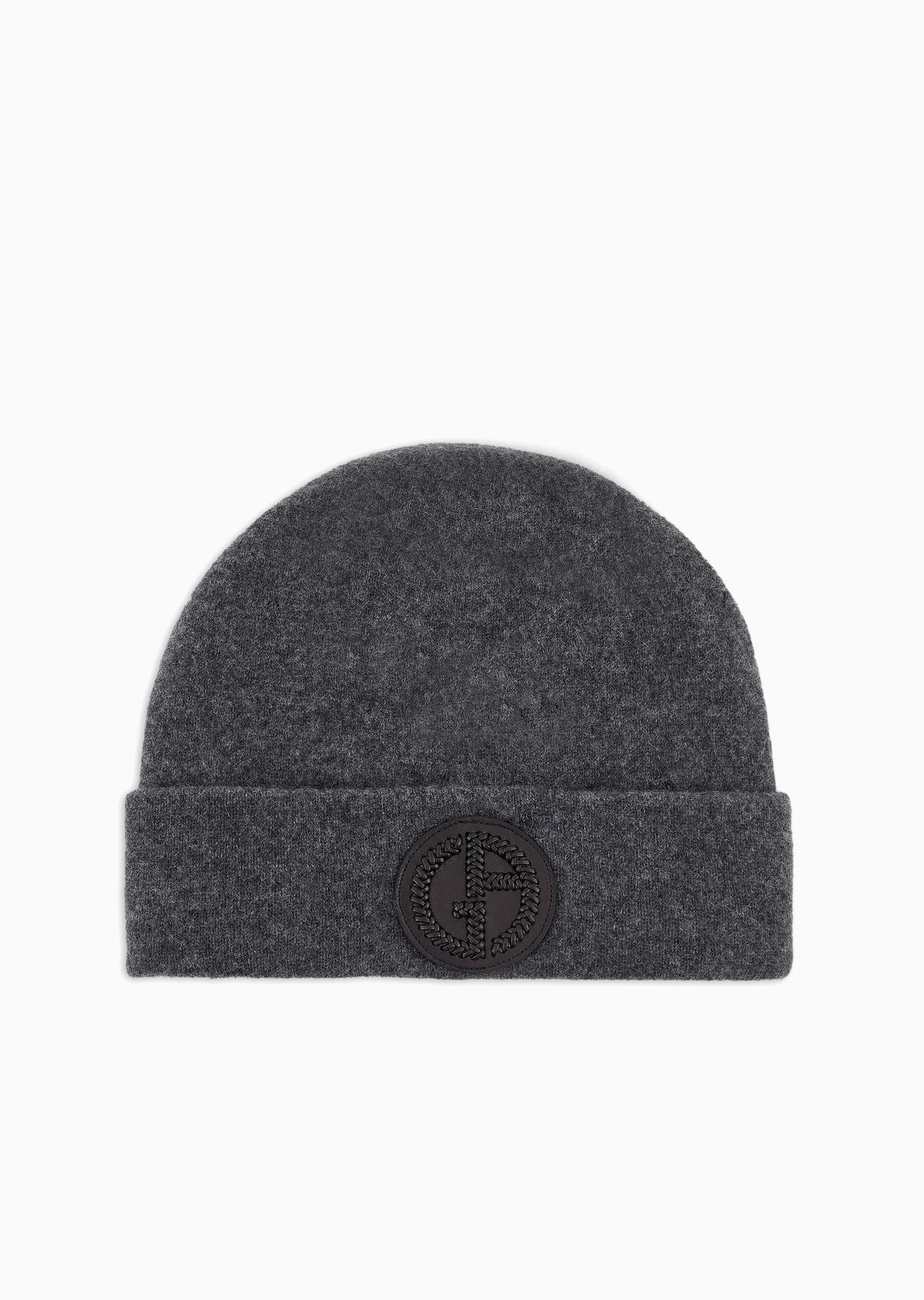 Beanie made from soft, luxurious, pure cashmere. The style is embellished with a leather patch detail with a woven-effect GA logo. Product Code: 7474404F515100042 Details Composition 100% Cashmere Leather patch with woven-effect GA logo Made in Italy