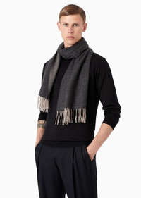 This elegant, sophisticated men’s scarf is made from extremely soft, luxury cashmere, making it perfect during the coldest months of the year. It adds personality to a wide variety of looks, thanks to the accessory’s contrasting, embroidered signature logo. Product Code: 7450080A137100044 Details Composition 100% Cashmere Embroidered GIORGIO ARMANI logo Fringed hem Dimensions: 180 x 37 cm Made in Italy