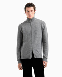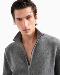 Regular-fit mock-neck cardigan in warm cashmere that feels cosy and comfortable. Available in versatile shades, the style has a zip fastening, dropped shoulders and ribbed details on the collar, cuffs and hem. Perfect for teaming with the collection’s trousers and shirts for versatile daytime looks. Fineness: 7 Mock neck Three-quarter-zip closure Rib-knit collar, cuffs and hem Made in Italy Product Code: GM001642AF16822U8110