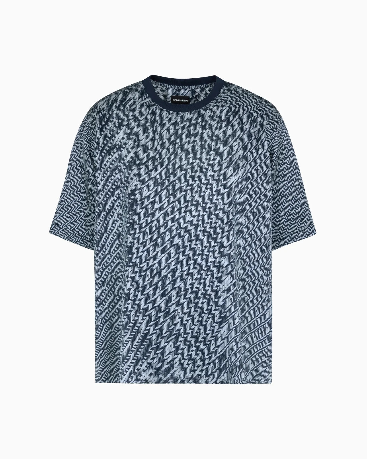 Slightly oversized T-shirt shirt in silk, featuring a two-toned chevron print that creates a three-dimensional effect. A versatile style designed to add laid-back allure to daytime looks. Crew neck Knit collar detail Short sleeves Two-tone chevron print Made in Italy Product Code: GM000055TE14717MB023