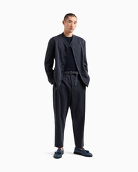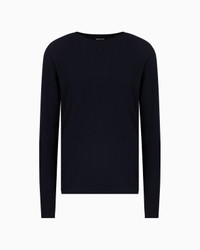 Elegant long-sleeved crew-neck jumper made from cosy virgin wool. The style features a chevron weave that creates a three-dimensional effect. Available in versatile shades that recall the collection’s colour palette, it is perfect to wear under a jacket to complete sophisticated looks. Slim fit Crew neck Long sleeves Jacquard chevron weave Made in Italy Product Code: GM001650AF14552UB102