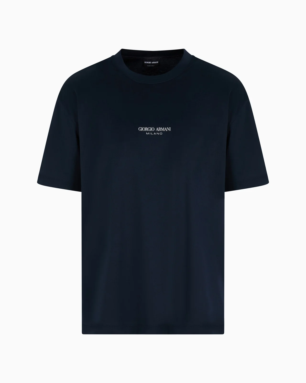 Relaxed-fit, crew-neck T-shirt made from pure cotton interlock. The extremely minimalist style is available in the seasonal colour palette, combined with versatile shades. A perfect addition to a variety of seasonal outfits, it can be paired with trousers and jeans for relaxed, effortless looks. Crew neck Short sleeves Contrasting Giorgio Armani logo print Made in Italy Product Code: GM001085TE10629UB100