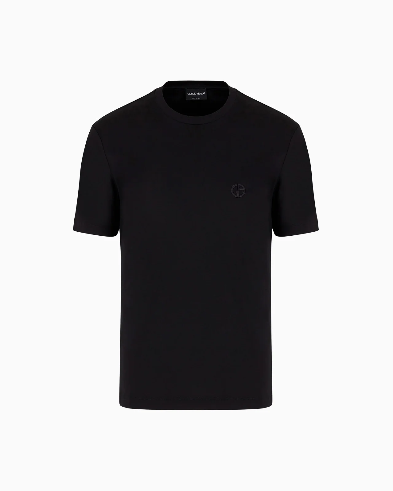 This crew neck T-shirt, made from cotton interlock, has a special and more refined new personality. Embellished with a matching embroidered GA logo on the chest, this versatile item with evergreen appeal eloquently conveys Giorgio Armani’s essential elegance. Product Code: 3HSM72SJTKZ1UC99 Details Composition 100% Cotton Crew neck Short sleeves Monochromatic, embroidered GA logo on the chest Made in Italy Fitting The model is 188 cm tall and is wearing size 48/M
