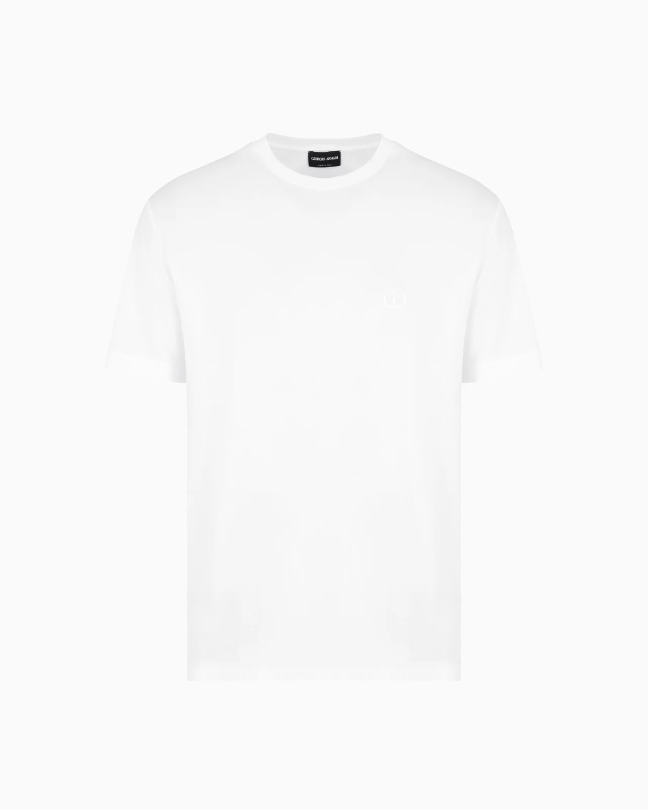Crew-neck T-shirt made from cotton interlock in a refined style. Embellished with a matching embroidered GA logo on the chest, this versatile item with evergreen appeal eloquently conveys Giorgio Armani’s essential elegance. Crew neck Short sleeves Matching, embroidered GA logo on the chest Made in Italy Product Code: 3HSM72SJTKZU0002