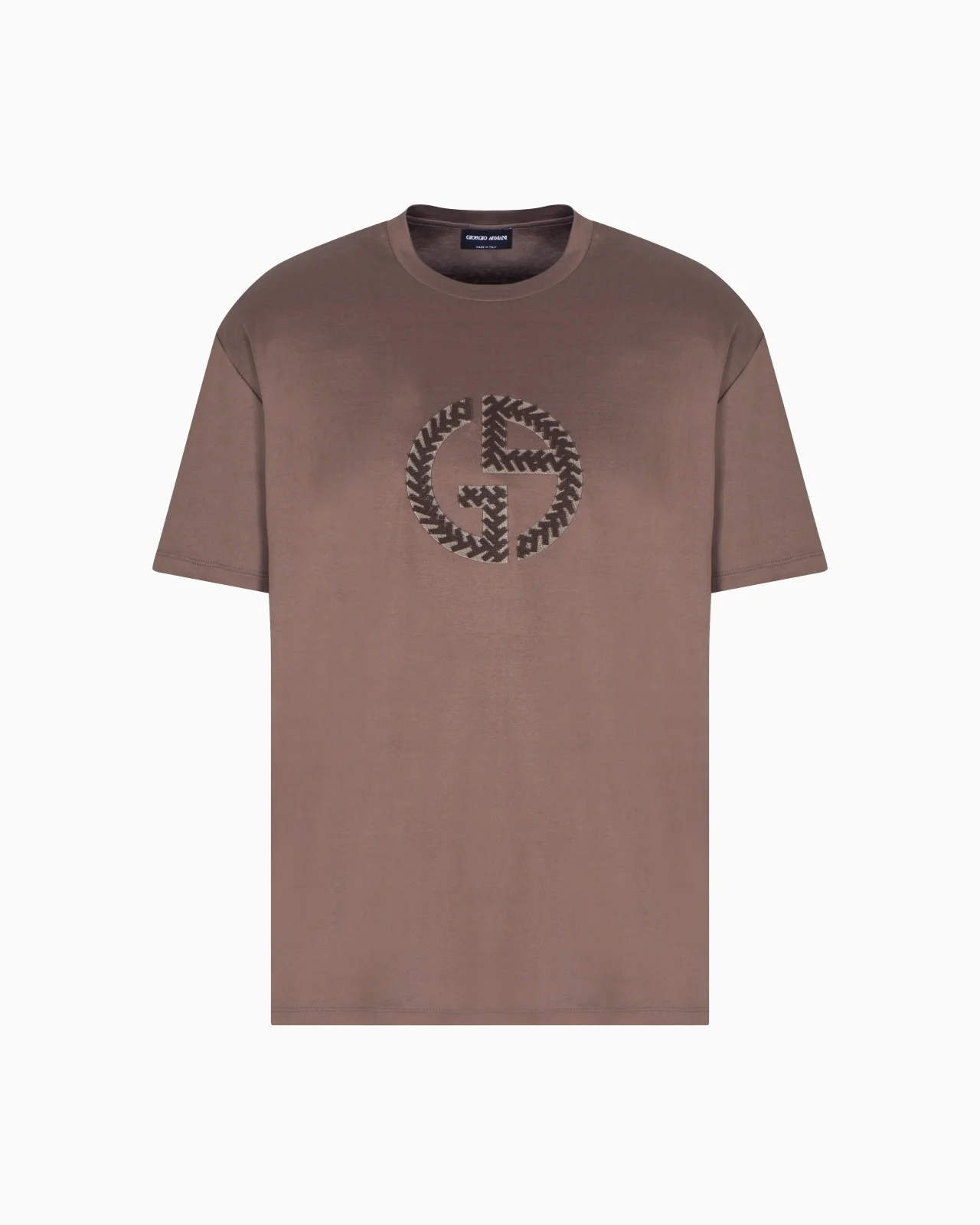 COTTON-INTERLOCK T-SHIRT WITH OVERSIZED EMBROIDERED GA LOGO