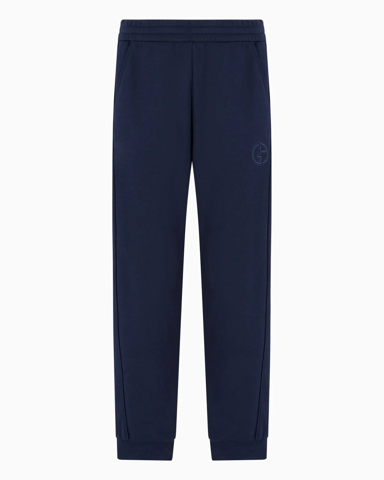 Comfortable, loose-fitting joggers made of cotton jersey-fleece and cashmere. The style is customised with a matching embroidered GA logo and lends itself to numerous combinations, completing laid-back, leisure-time looks. Elasticated waist Two side pockets Colour-matched piping Monochromatic, embroidered GA logo Made in Italy Product Code: GM001097TE11705UB102