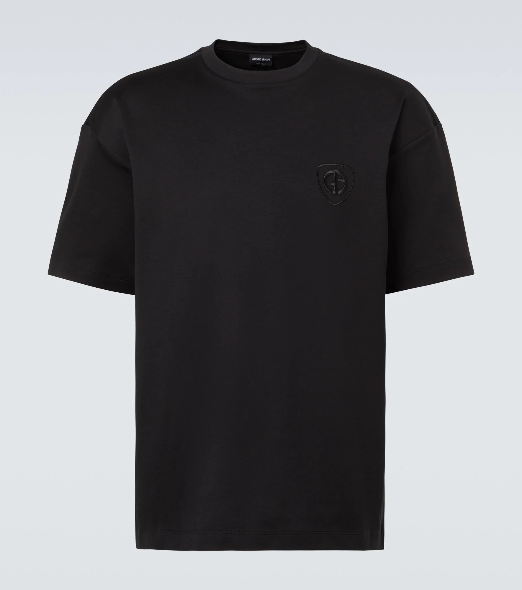 Known for its streamlined modernity, Giorgio Armani presents an elegant take on classic silhouettes and immaculate suiting. This T-shirt is made from cotton jersey and features tonal logo embroidery. Product Details - Material: 100% cotton - Care instructions: hand wash - Made in Italy - Color: black - Designer color name: Onix - Item color: black - Collar: crewneck - Item number: P01083224 Size & Fit - True to size - Dropped shoulders - Straight fit - Slightly stretchy fabric - Falls to the hip - Height of model is 189cm-74.5" and wears a size IT 50