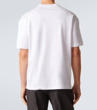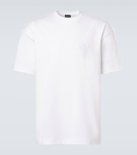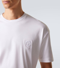 Known for its streamlined modernity, Giorgio Armani presents an elegant take on classic silhouettes and immaculate suiting. This T-shirt is made from cotton jersey and features tonal logo embroidery. Product Details - Material: 100% cotton - Care instructions: hand wash - Made in Italy - Color: white - Designer color name: Chalk - Item color: white - Collar: crewneck - Item number: P01083225 Size & Fit - True to size - Dropped shoulders - Straight fit - Slightly stretchy fabric - Falls to the hip - The model in the picture is 185cm-6'1" and wearing a size IT 50