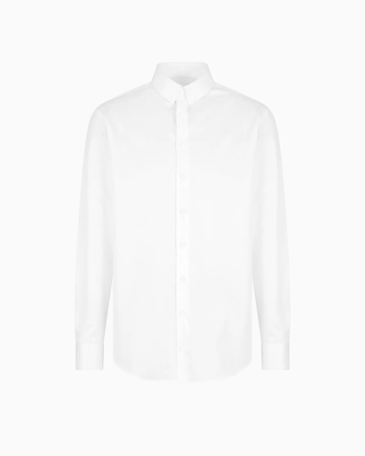 Made from smooth cotton twill, this regular-fit shirt is available in neutral shades that can be worn everywhere. It features a back yoke, mother-of-pearl buttons and a small, wide stand collar. Product Code: 8WGCCZMNTZ0641U0BN Details Composition 100% Cotton Regular fit Small high stand collar with concealed metal snap buttons Back yoke Fastened with mother-of-pearl buttons Made in Italy Fitting The model is 188 cm tall and is wearing size 40
