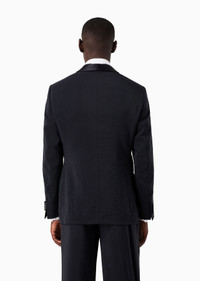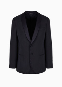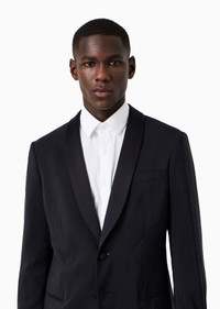 The ultimate symbol of elegance, the tuxedo jacket is a must-have in the refined male wardrobe. This single-breasted style from the Soho Line is made of a soft silk blend for comfortable wear. It is embellished with monochromatic satin accents on the jacket’s shawl lapels and buttons. An iconic style, perfect for special occasions. Product Code: 4SGGG16ST00Q71UBWF Details Composition 75% Mulberry silk 25% Polyamide Single-breasted tuxedo jacket Shawl collar Single-breasted closure with two satin-covered buttons Satin details on the collar, buttons and trim Two double welt pockets Breast welt pocket Cuffs with four covered buttons Lined yoke Length: 73.5 cm Made in Italy Fitting The model is 188 cm tall and is wearing size 48/M