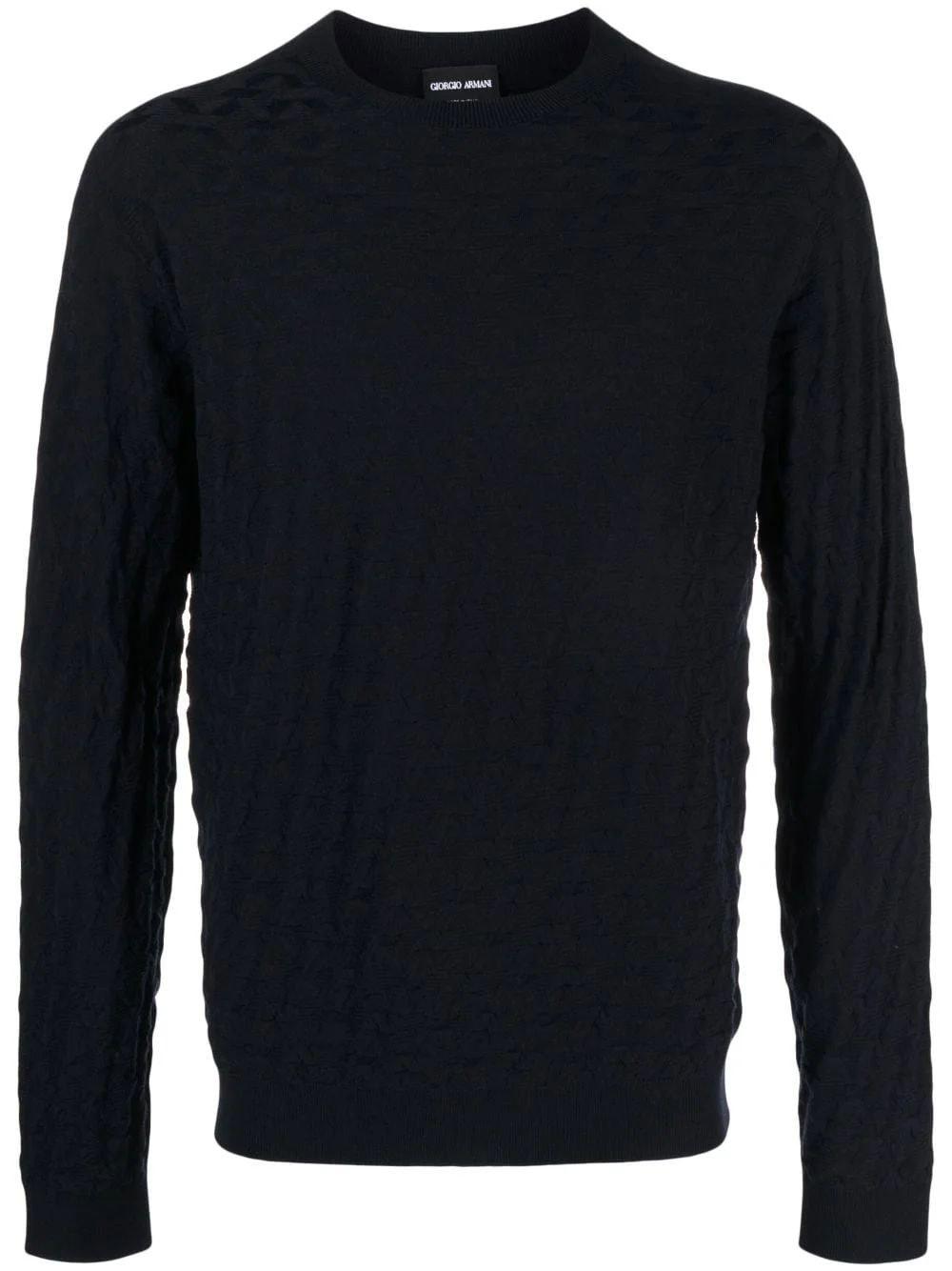 crew-neck knitted jumper Highlights - Midnight blue - Virgin wool blend - Knitted construction - Vertical stripe pattern - Crew neck - Long sleeves - Ribbed edge Made in Italy Composition Virgin Wool 94%, Polyester 6% SIZE & FIT Model measurements Height 6 ft 2 in(1.87 m) Bust/Chest 36.41 in(92.5 cm) Hips 35.43 in(90 cm) Waist 29.52 in(75 cm) FittingInformation Designed for a relaxed fit, this piece allows for comfort and movement when worn Made with a midweight knit, this piece offers some stretch This piece fits true to size – take your usual size