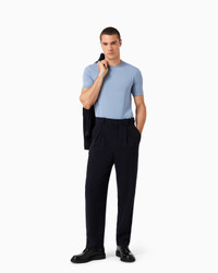The Icon collection encapsulates the defining aesthetics around which the identity of the Giorgio Armani brand has evolved. A collection of must-have pieces that represent the Armani legacy, history and peerless mastery of tailoring. Iconic, classic, ageless designs made from the brand’s signature fabrics and all-Italian craftsmanship. A wardrobe staple that can be worn anywhere, thanks to its luxurious texture and perfect fit. Short-sleeved, crew-neck T-shirt in stretch viscose jersey finished with lapped seams. Product Code: 8NST52SJP4Z1U9UL Details Composition 90% Viscose 10% Elastane Icon T-shirt Crew neck Short sleeves Rolled, lapped-seam collar and cuffs Made in Italy Fitting The model is 188 cm tall and is wearing size 48/M