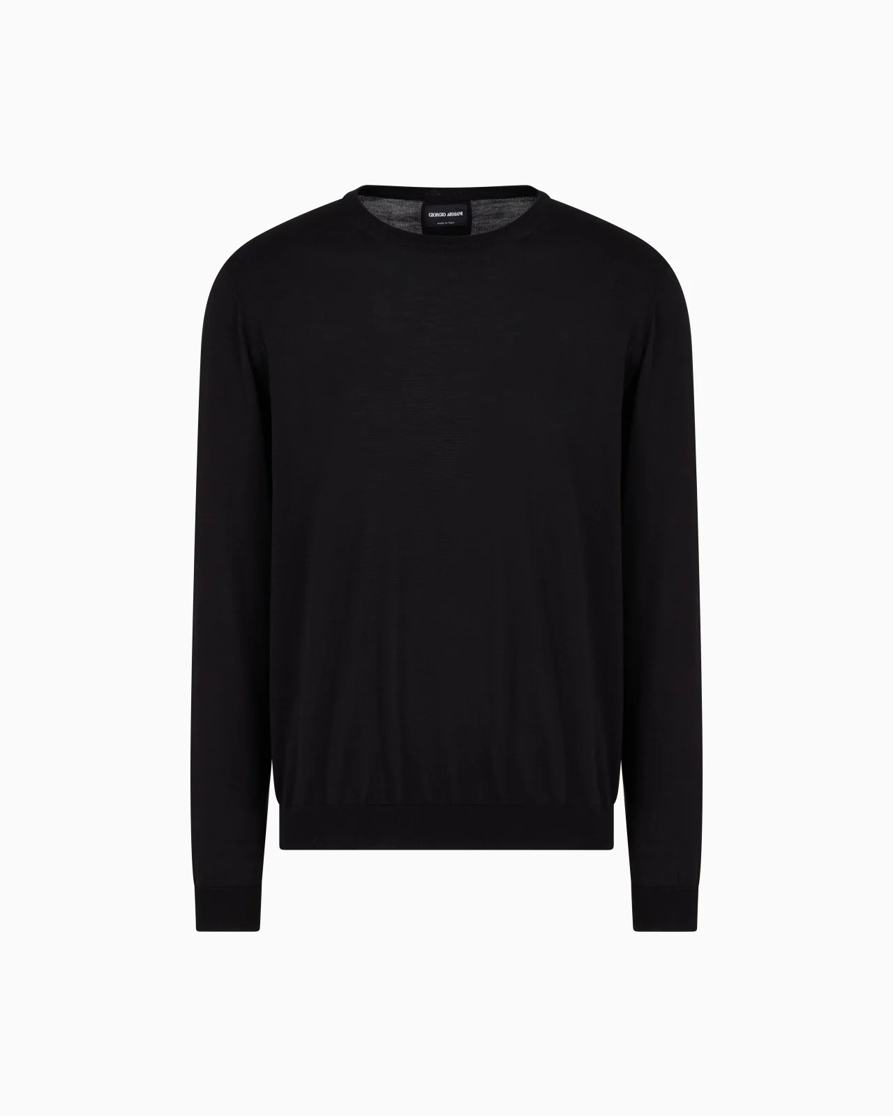 Long-sleeved crew-neck jumper made from silk and cotton and embellished with ribbed edges. An elegant, minimalist piece becomes a men’s wardrobe staple that can be worn anywhere. Product Code: 3HSM37SM63Z1UC99 Details Composition 58% Silk 42% Cotton Fineness: 18 Crew neck Long sleeves Ribbed collar, cuffs and hem Made in Italy Fitting The model is 188 cm tall and is wearing size 48 / M