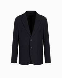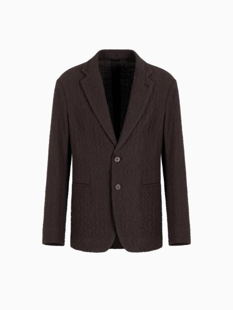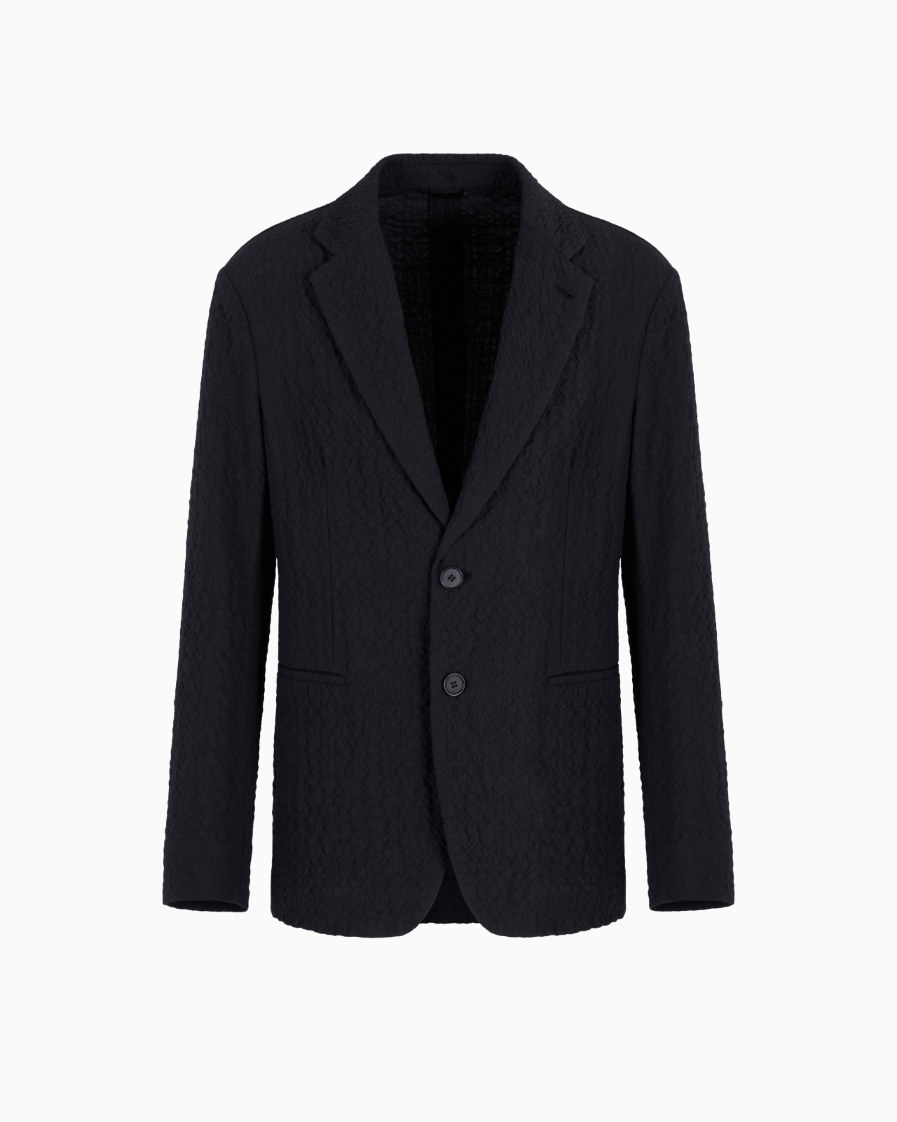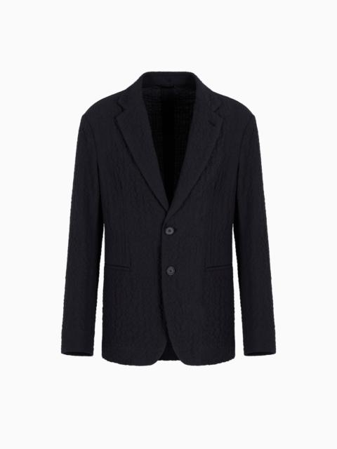 Unlined single-breasted jacket in a comfortable and lightweight fit, thanks to the essential construction. The style, with notched lapels and welt pockets, is made of stretch virgin wool with a distinctive cloque weave, which gives the piece a three-dimensional effect and structure. An offering with a refined, extremely versatile style, perfect for accompanying different looks. Single-breasted jacket Notched lapels Two-buttoned, single-breasted closure Two welt pockets Unlined Length: 73 cm Made in Italy Product Code: GM001517TE13955UB117