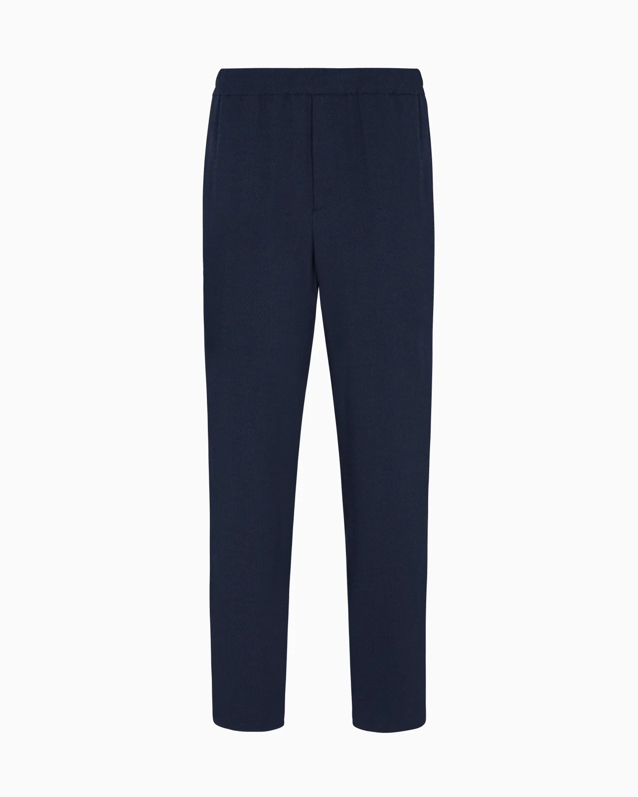 Unstructured, relaxed lines give these flat-front trousers a laid-back attitude. This style is made in cupro and viscose embellished by a monochromatic chevron motif that adds structure and a three-dimensional look to the yarn. With a flat front, elasticated waist and comfortable fit, they are an ideal daytime piece. Flat-front trousers Elasticated waistband Zip closure Two side pockets Single back welt pocket Cuff width: 18.5 cm Made in Italy Product Code: GM002396TE16784U8132