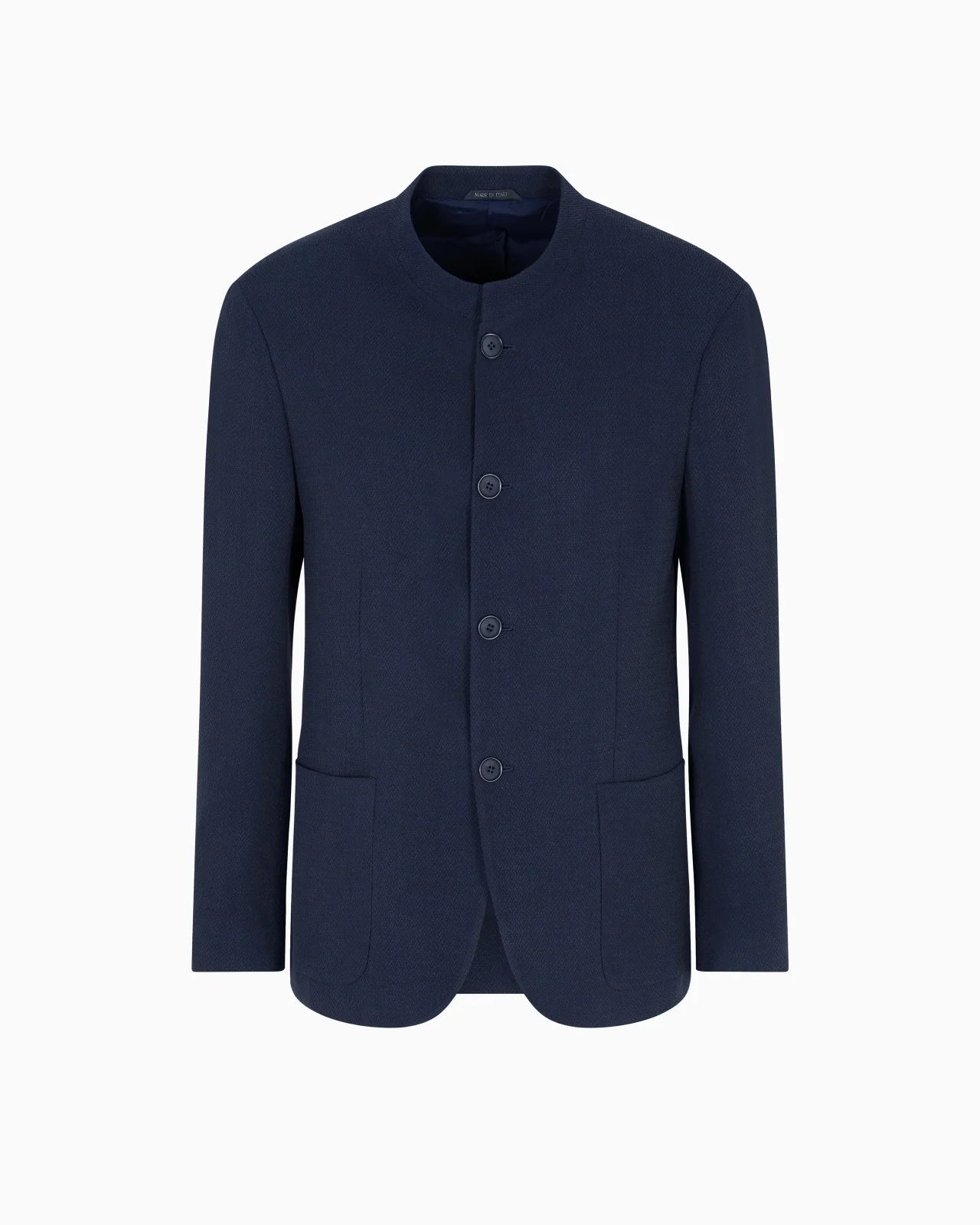 CUPRO AND VISCOSE SINGLE-BREASTED JACKET WITH A MICRO CHEVRON MOTIF