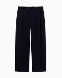 Single-pleat trousers made of cupro basketweave. Featuring a waistband, button and zip closure and side pockets, the style is distinguished by the smooth feel of the yarn, which enhances the comfortable fit. A piece with a modern, relaxed cut, the perfect match for a multitude of looks. Fabric: 100% cupro from recycled cotton by-products Single-pleat trousers Belt with metallic buckle Waistband with belt loops Button and zip fastening Two side pockets Two back welt pockets Hem width: 26 cm Made in Italy Product Code: GM003383TE10069UC001