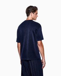 Crew-neck T-shirt in smooth cupro jersey. A style with clean and essential lines, the perfect complement to casual looks designed for daytime. The piece is part of the Holiday selection, which plays with an elegant colour palette that offers shades of grey, onyx and notes of blue. Nuances that combine with exquisite fabrics and fluid shapes that express a great sense of modernity in perfect Giorgio Armani style. Crew neck Short sleeves Made in Italy Product Code: GM003191TE20248UB102