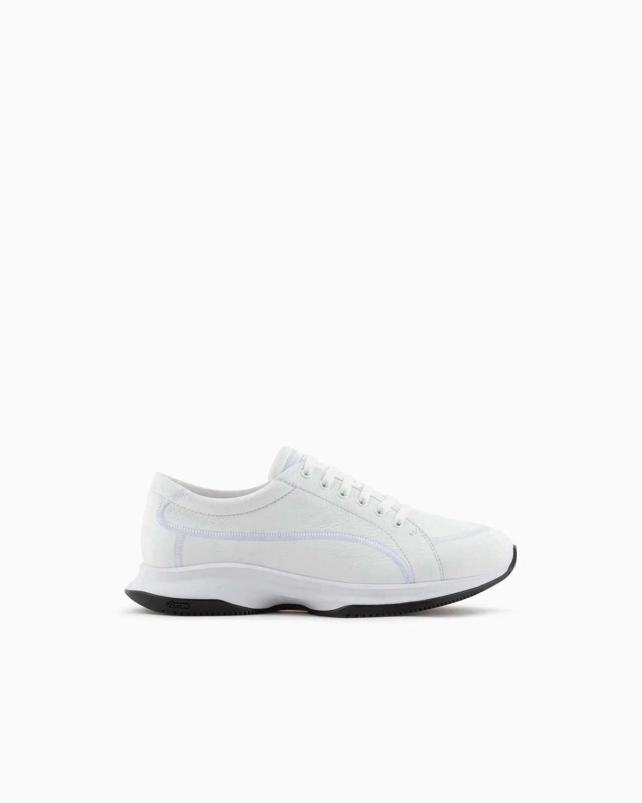 The rounded, enveloping silhouette is the distinctive design feature of these sneakers, now featuring an innovative Vibram outsole. Made from premium deerskin, with a six-eyelet lacing, these shoes are durable and lightweight, and permit proper flexing and twisting of the foot with every step, ensuring maximum comfort. Product Code: X2X180XN9141A222 Details Composition 100% Buckskin Monochromatic topstitching Embossed logo on tongue Innovative Vibram outsole Made in Italy