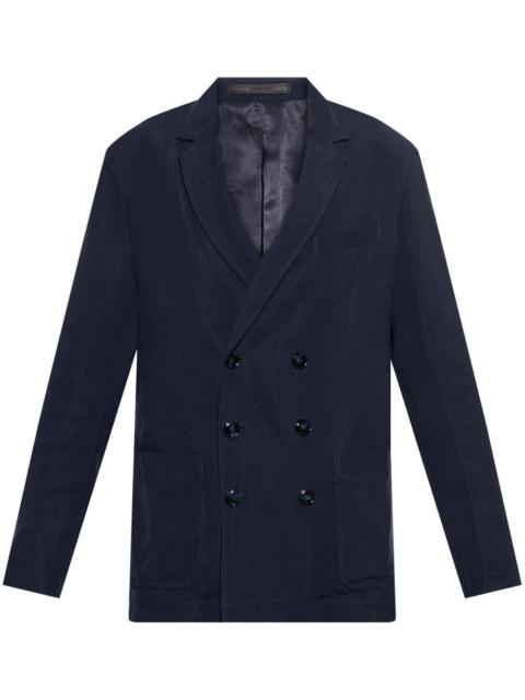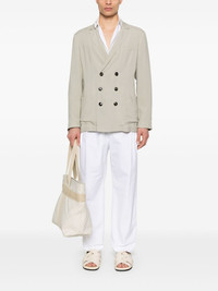 double-breasted blazer Highlights - Taupe - Front button fastening - Chest welt pocket - Two side patch pockets - Partial lining Made in Italy Composition Lining: Cupro 100% Outer: Cupro 100% SIZE & FIT Model measurements Height 6 ft 1 in(1.85 m) Bust/Chest 35.82 in(91 cm) Hips 37.79 in(96 cm) Waist 29.13 in(74 cm) FittingInformation Designed for a slim fit, offering a comfortable fit that sits just away from the body Made from a midweight non-stretch fabric
