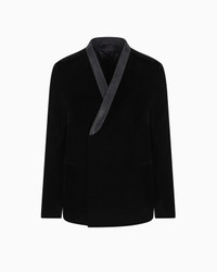 Elegant and sophisticated double-breasted jacket made of stretch velvet, accented with an exquisite shawl collar covered all over in monochromatic rhinestones. This item is part of the Giorgio’s collection: a selection of Giorgio Armani clothing and accessories inspired by the evening world. Clean lines, attention to detail, an elegant night-time colour palette and the choice of luxurious materials define this modern and essential selection, providing the look for an effortless evening wardrobe. Product Code: 3WGGG143T00251UC99 Details Composition 66% Viscose 32% Cupro 2% Elastane Upton line tuxedo jacket Buttoned double-breasted closure Shawl collar covered with monochromatic pave rhinestones Two welt pockets Button cuffs Satin lining with contrasting all-over signature logo Two buttoned inner pockets Length: 71 cm Made in Italy Fitting The model is 188 cm tall and is wearing size 48/M Italian Size