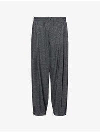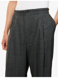 PRODUCT DETAILS - Giorgio Armani woven trousers - 74% cupro, 26% polyamide - Relaxed fit, elasticated waist, two slip pockets, two jetted pocket at back, gathered waist - Dry clean - Made in Italy - Model is 6ft 2in/1.88m and wears a size UK 32 - Lightweight, slight stretch Ref: R04485164