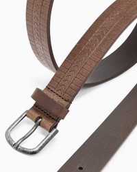 Belt made of leather, featuring a distinctive embossed motif and smooth pin in distressed ruthenium. A refined and versatile accessory that will elegantly complete everyday looks. Distressed ruthenium pin Smooth leather keeper loop Made in Italy Product Code: GM002438AF20593U8162
