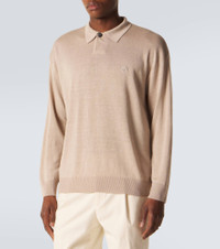 Known for its streamlined modernity, Giorgio Armani presents an elegant take on classic silhouettes. This classic polo sweater is cut from a fine linen-blend knit and finished with tonal logo embroidery on the chest. Product Details - Material: 58% linen, 42% lyocell - Care instructions: hand wash - Made in Italy - Color: beige - Designer color name: Sabbia - Collar: polo collar - Closure: buttoned front - Hem: ribbed - Cuff: ribbed - Contains non-textile parts of animal origin - Item number: P01106572 Size & Fit - True to size - Dropped shoulders - Straight fit - Slightly stretchy fabric - Falls below the hip - Height of model is 189cm-74.5" and wears a size IT 50