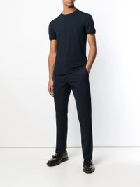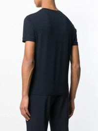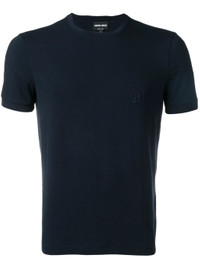 Navy blue embroidered logo T-shirt from Giorgio Armani featuring a crew neck, short sleeves, a logo to the chest and a straight hem. - chest: 107.0 centimetres - Color: BLUE - Made in: Italy - Designer Style ID: SJP4Z 3GST52 UBSG Composition and care Spandex/elastane: 10%, Viscose: 90%