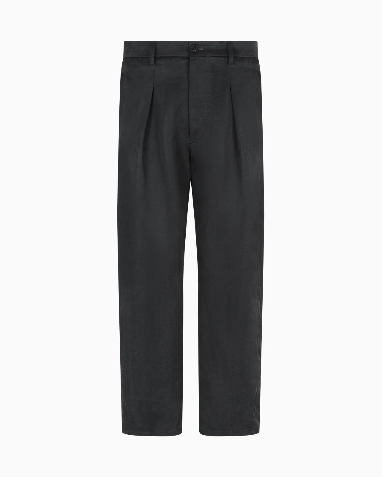 One-pleat trousers made from Lyocell and linen canvas with a distinctive faded effect. With waistband with belt loops, button and zip closure and side pockets, the style is distinguished by its extremely smooth, silky feel that ensures a comfortable fit. A piece with a modern, relaxed cut, the perfect match for a multitude of looks. Single-pleat trousers Waistband with belt loops Button and zip closure Two side pockets Two buttoned back pockets Cuff width: 19 cm Made in Italy Product Code: GM001118TE13879U7238