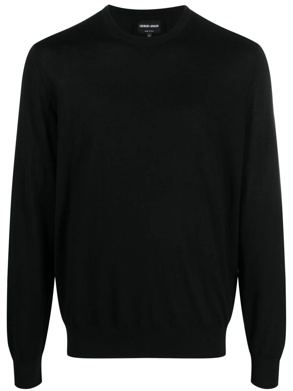 fine knit virgin-wool jumper black virgin wool fine knit round neck long sleeves ribbed cuffs ribbed edge Made in Italy Composition Virgin Wool 100% SIZE & FIT Model measurements Height 6 ft 2 in(1.87 m) Bust/Chest 35.82 in(91 cm) Hips 35.43 in(90 cm) Waist 27.95 in(71 cm) FittingInformation This piece fits true to size. We recommend you get your regular size Cut for a relaxed fit Made with a mid-weight fabric Washing instructions Hand Wash