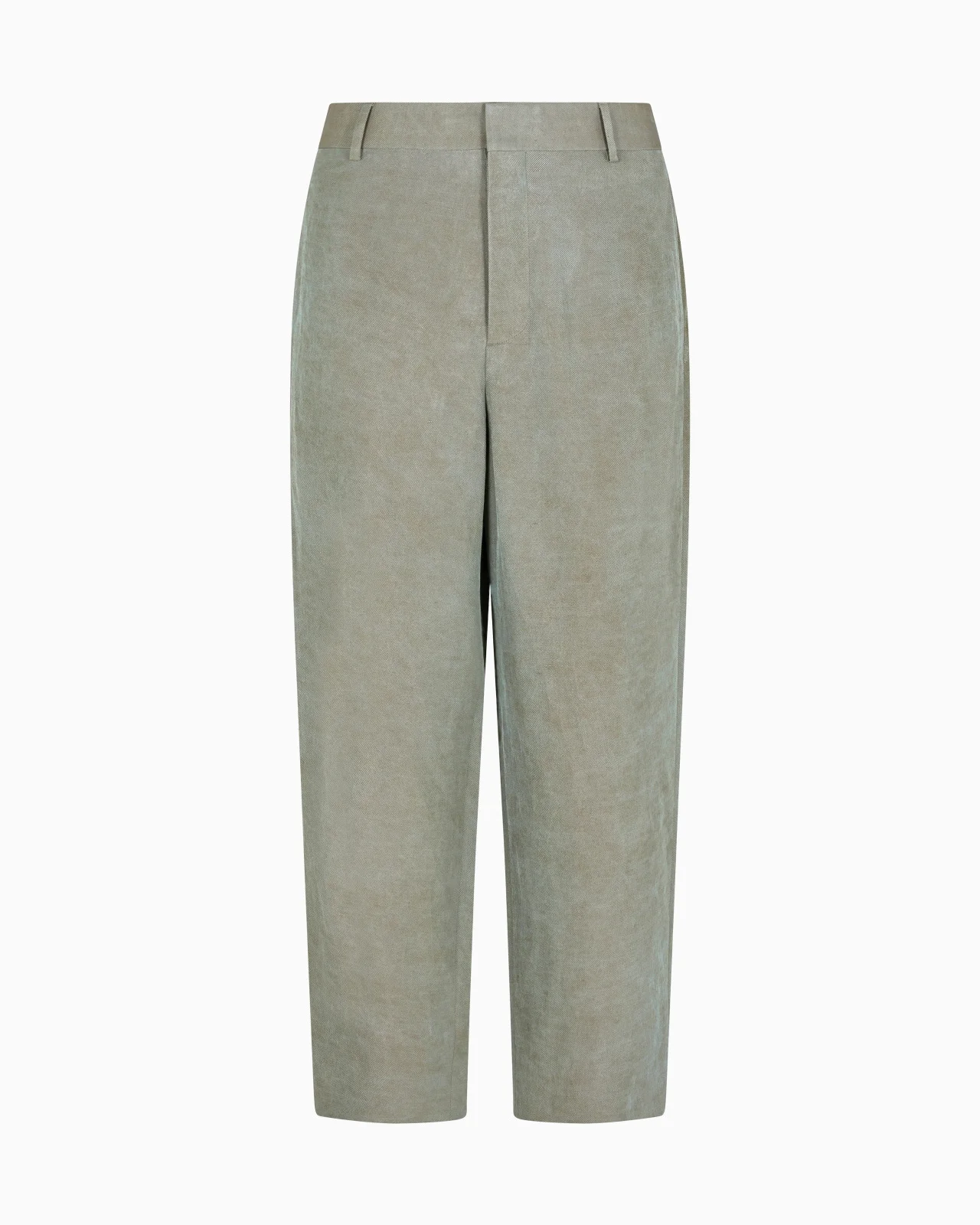 Flat-front trousers made of a distinctive iridescent linen twill in a comfortable fit. The style, with a waistband, belt loops, and front and back welt pockets with a button, is distinguished by its carefree, relaxed attitude. A perfect piece for daytime looks when worn with the collection’s shirts and jackets. Flat-front trousers Waistband with belt loops Zip-and-hook closure Two side pockets Two buttoned back pockets Cuff width: 28 cm Made in Italy Product Code: GM000919TE14480U8078