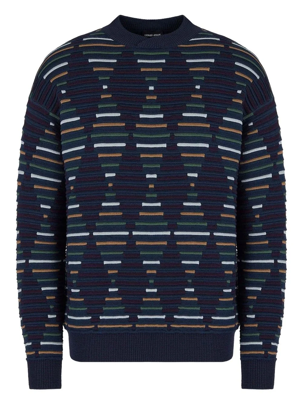 geometric-jacquard sweater Highlights - Navy blue - Crew neck - Drop shoulder - Long sleeves - Ribbed cuffs and hem Made in Italy Composition Virgin Wool 100%