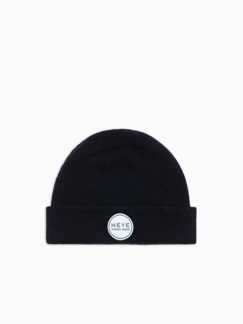 Beanie made of cashmere, with a plain-knit tubular construction, available in the collection colour palette. An extremely versatile style, customised with a removable round patch with the Giorgio Armani Neve logo. The accessory is part of the Giorgio Armani Neve collection, a selection dedicated to the world of winter sports and mountains. A colour palette featuring intense shades of black, expertly combined with metallic-effect fabrics and froisse details, expressing textural sophistication. The spirit of the collection is evoked through cosy, warm yarns and clothing with enveloping volumes and refined workmanship. Fineness: 15 Plain-knit tubular construction Giorgio Armani Neve removable patch Made in Italy Product Code: GM000759AF13144O8007