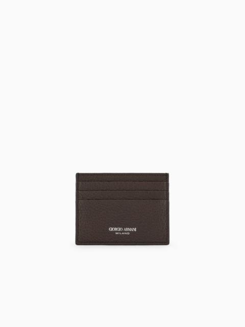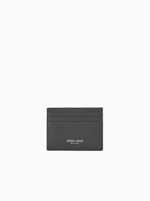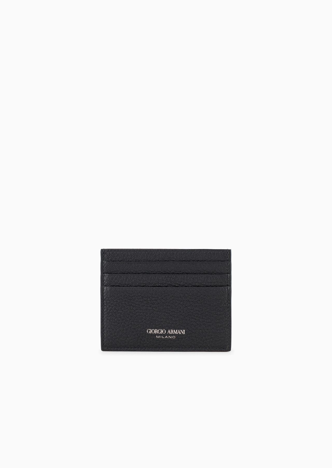 Pinpoint embossed leather card holder with slots. The style is embellished with a front heat-stamped logo. Product Code: Y2R434YR56J180001 Details Composition 100% Calf-skin leather Leather card holder Heat-stamped Giorgio Armani logo Measurements: 10.5 x 8.5 x 1 cm Made in Italy