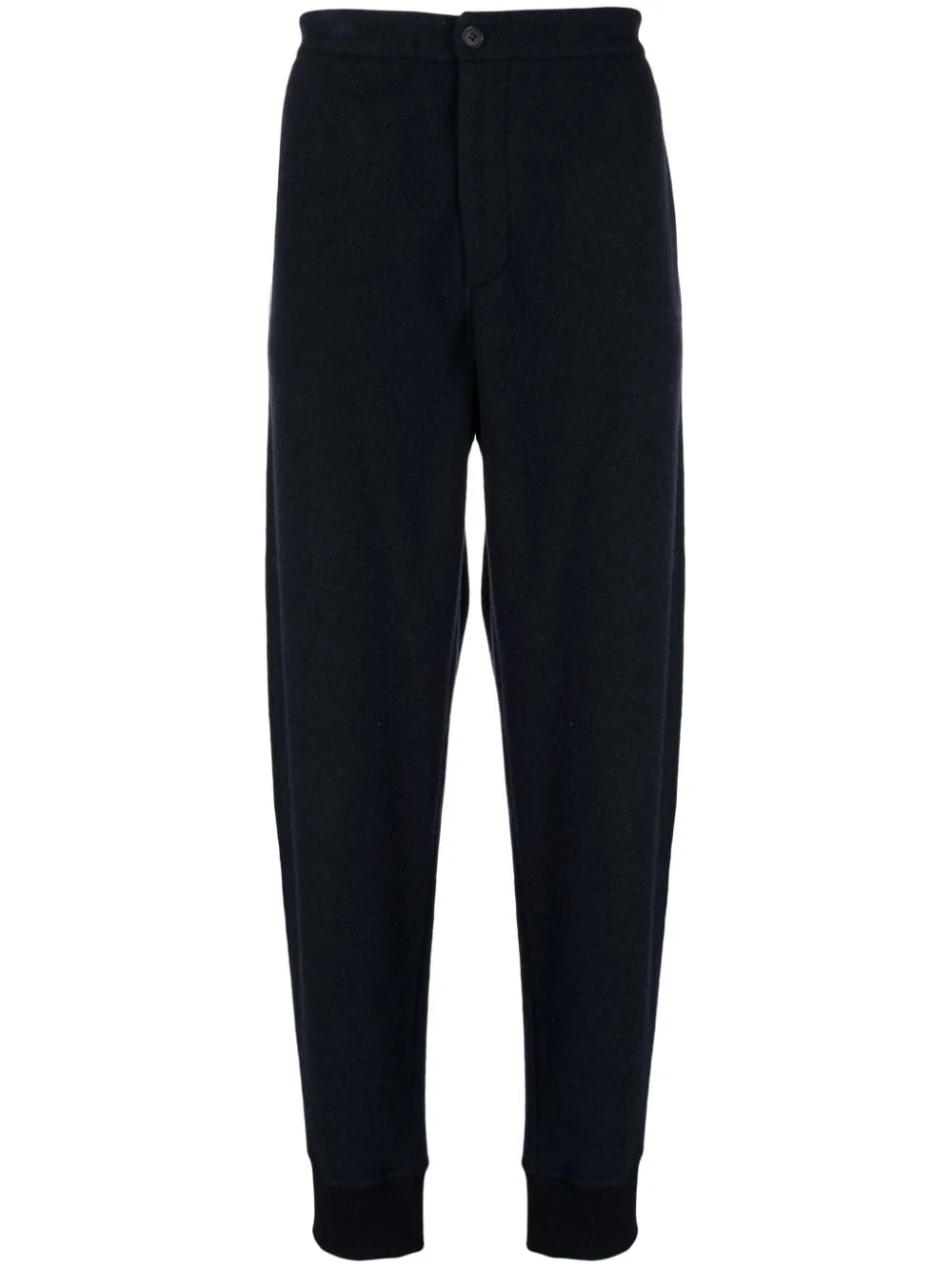 high-waist tapered-leg trousers Highlights - Navy blue - Cashmere-wool blend - High waist - Front button fastening - Tapered leg - Two side inset pockets - Rear patch pocket - Elasticated ankles Made in Italy Composition Body: Cashmere 97%, Wool 3% Wool 69%, Polyamide 22%, Elastane 9% SIZE & FIT Model measurements Height 6 ft 2 in(1.87 m) Bust/Chest 31.49 in(80 cm) Hips 37.79 in(96 cm) Waist 27.95 in(71 cm) FittingInformation Designed for a tapered leg, offering a loose unrestricted fit over the leg with a closer fit towards the ankle The elasticated hem at the ankle allows for movement and a comfortable fit Made with a midweight knit, this piece offers some stretch This piece fits true to size – take your usual size