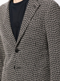 houndstooth-pattern single-breasted blazer Highlights - Black/taupe brown - Houndstooth pattern - Knitted construction - Narrow notch lapels - Front button fastening - Two front patch pockets - Chest patch pocket - Long sleeves - Buttoned-cuff sleeves - Straight hem Made in Italy Composition Body: Viscose 55%, Virgin Wool 36%, Polyamide 8%, Elastane 1% Lining: Cupro 94%, Elastane 6% SIZE & FIT Model measurements Height 6 ft 2 in(1.87 m) Bust/Chest 34.25 in(87 cm) Hips 36.22 in(92 cm) Waist 29.52 in(75 cm) FittingInformation Designed for a slim fit, offering a comfortable fit that sits just away from the body The vented hem offers movement at the rear Made from a midweight non-stretch fabric This piece fits true to size – take your usual size