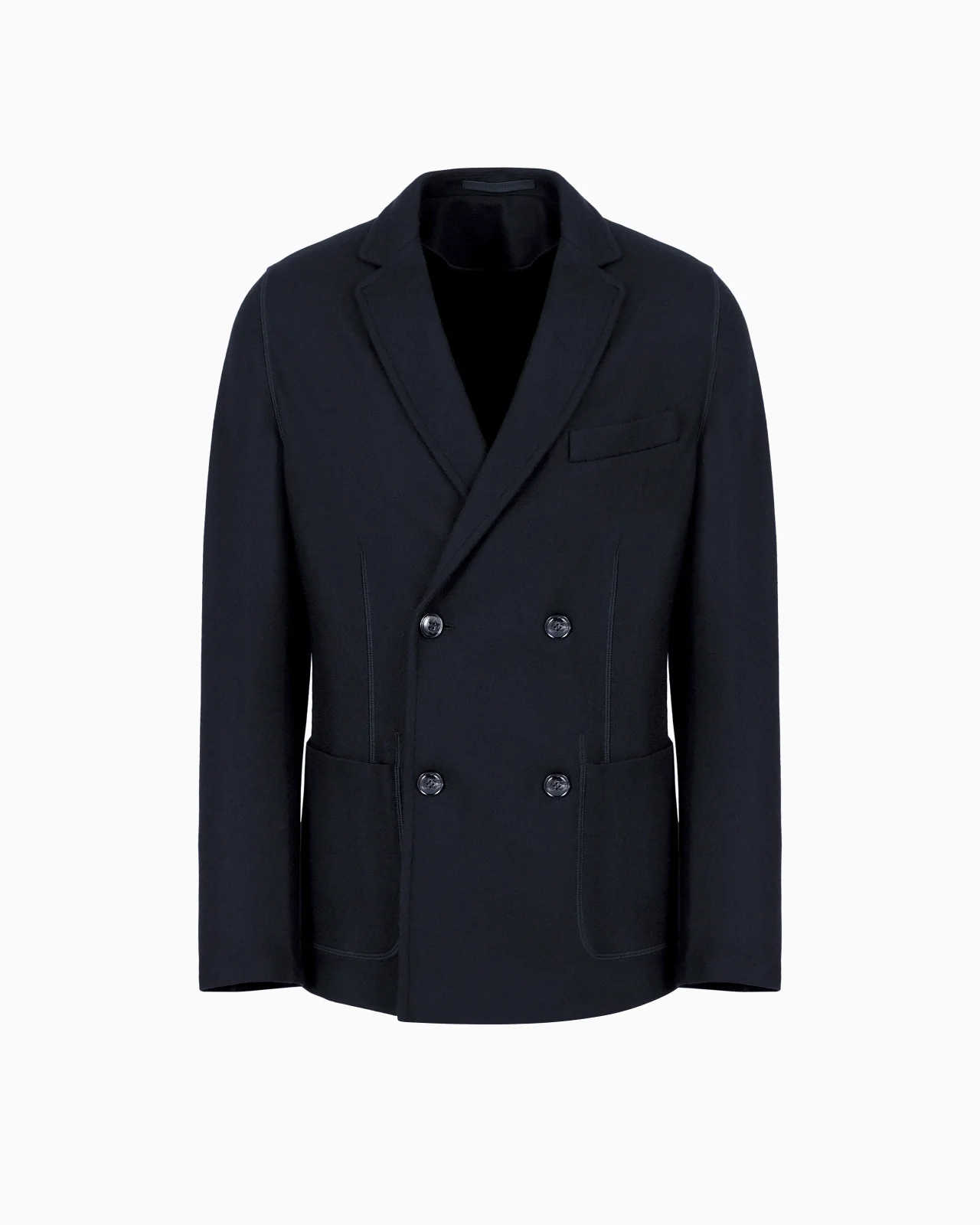 The Icon collection encapsulates the defining aesthetics around which the identity of the Giorgio Armani brand has evolved. A collection of must-have pieces that represent the Armani legacy, history and peerless mastery of tailoring. Iconic, classic, ageless designs made from the brand’s signature fabrics and all-Italian craftsmanship. Stitching details that accentuate the silhouette of this double-breasted jacket evoke the world of knitwear. This two-toned style is made from cashmere interlock with a cosy, comfortable feel and has a laid-back allure that will complete many looks. Product Code: 2CGGG0W5J000M1UBUV Details Composition 100% Cashmere Icon double-breasted jacket Notched lapels Buttoned double-breasted closure Two front welt pockets Breast pocket Unlined Two small internal buttoned pockets Length: 72 cm Made in Italy Fitting The model is 188 cm tall and is wearing size 48/M