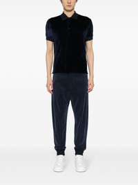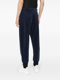 jersey tapered track pants Highlights - Navy blue - Jersey texture - Mid-rise - Front button and zip fastening - Two side zip-fastening pockets - Rear welt pocket - Tapered leg - Elasticated ankles Made in Italy Composition Cupro 72%, Viscose 20%, Elastane 8% SIZE & FIT Model measurements Height 6 ft 2 in(1.87 m) Bust/Chest 34.25 in(87 cm) Hips 36.22 in(92 cm) Waist 29.52 in(75 cm)