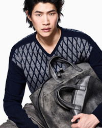 Special long-sleeved jumper, made of virgin wool and cashmere. The V-neck style features a jacquard motif pattern that adds character to the garment. A versatile item, designed to complete numerous looks. Fineness: 16 Three-colour jacquard stitch Diamond pattern design V-neck jumper Long solid-colour sleeves Dropped shoulders Garment with selvedge edges Made in Italy Product Code: GM003332AF25115FB074