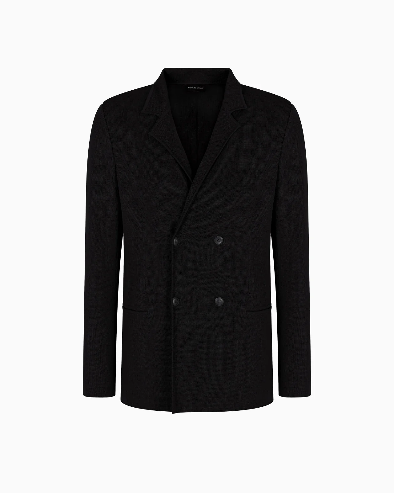 Double-breasted jacket made from a cosy, comfortable virgin wool and cashmere knit. The style’s slinky lines allow the body to move with a non-restrictive fit. It features two front welt pockets and a collar with notched lapels. An offering with a modern, laid-back attitude, perfect to pair with the collection’s shirts for relaxed looks. Fineness: 14 Double-breasted jacket Notched lapels Four-button, double-breasted closure Two welt pockets Unlined Length: 73 cm Made in Italy Product Code: GM001034AF14665UC001
