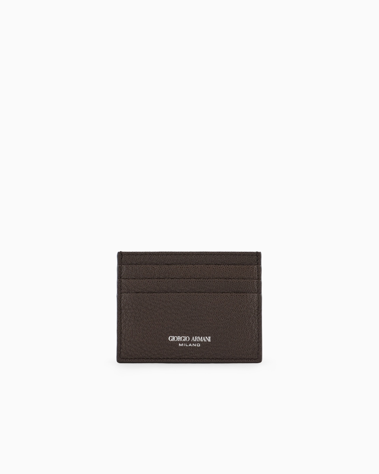 Compact and practical card holder, made of supple calfskin with a pinpoint design. The item features four compartments and a central compartment that is perfect for storing banknotes. The item is customised by a heat-stamped Giorgio Armani logo. One central banknote compartment Four card slots Embroidered GA logo with woven motif Measurements: 10.5 x 8.5 x 1 cm Made in Italy Product Code: Y2R434YR56J80005