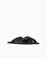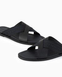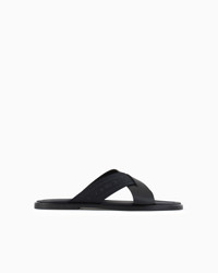 These luxury leather sandals feature distinctive, wide criss-crossed straps on the front. The style features Giorgio Armani logo jacquard webbing. A padded insole and flexible leather sole guarantee maximum comfort. Logo jacquard webbing Leather padded insole Thermoplastic polyurethane sole Made in Italy Product Code: X2P077XN159M570